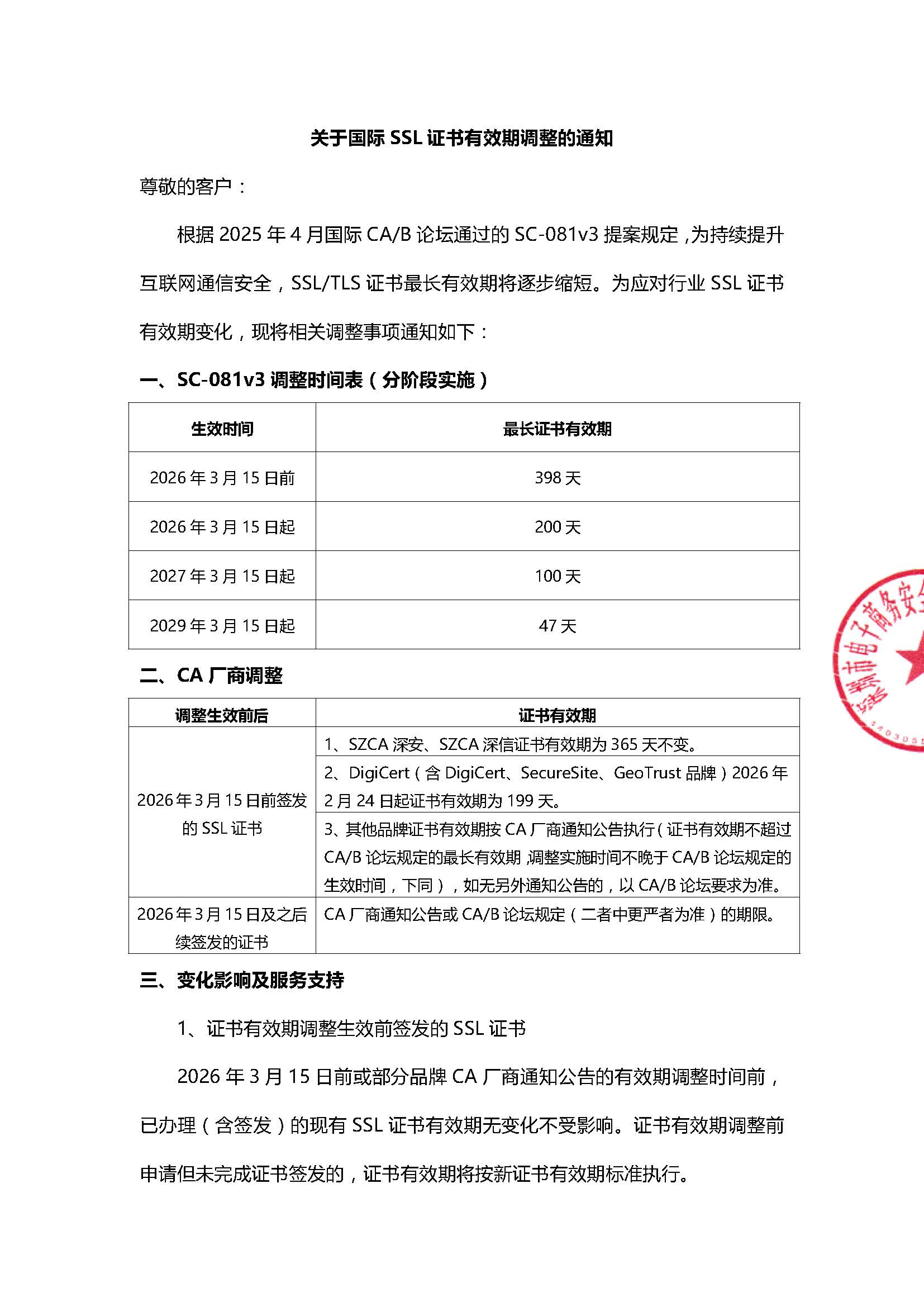 关于国际SSL证书有效期调整的通知