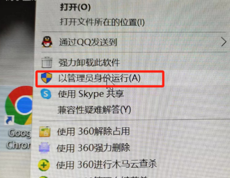 3.若使用谷歌浏览器,则鼠标右键点击,以管理员身份运行后再操作。
