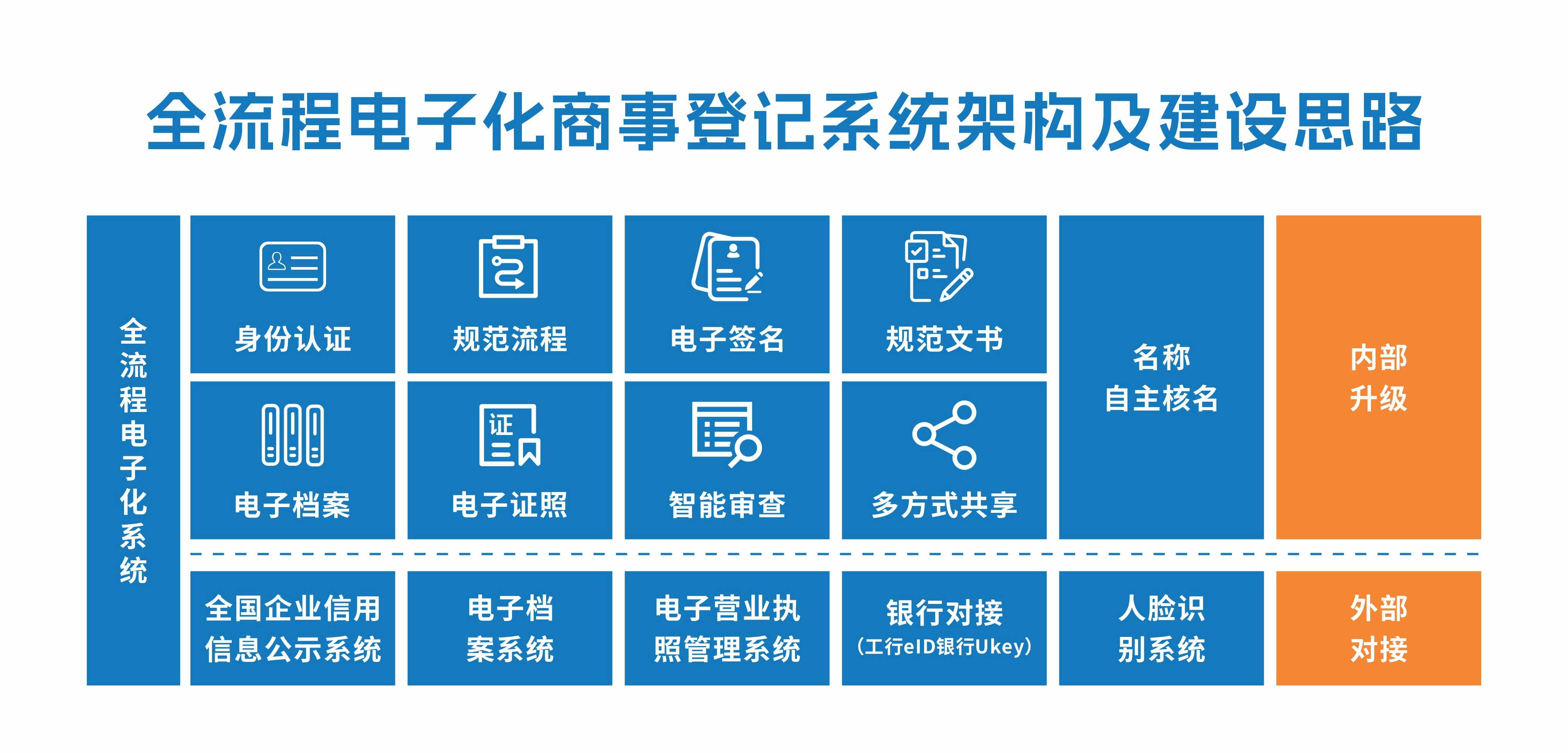 全面实现商事登记业务办理“一个环节申报”、“一天内办结”、“零费用”、“零跑动”。