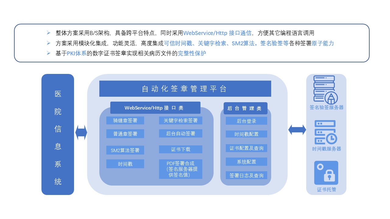 让医院彻底实现病案无纸化,不仅要考虑便捷性、易用性,更重要的核心在于无纸化后的电子病案是否合法有效,医患双方签署的可信性、安全性等问题。这些问题我们通过密码技术的可靠电子签名逐一进行解决。
